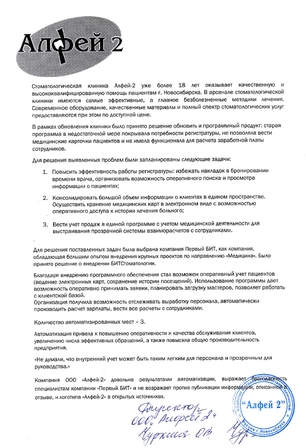 Клиент: Стоматологическая клиника Алфей-2