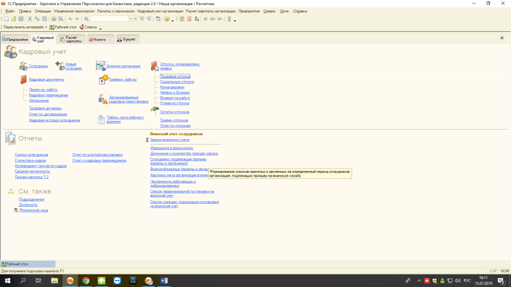 - Возможности программы «1С:Зарплата управление персоналом 8 для Казахстана» при работе с отпускными